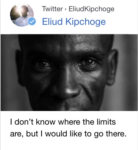Of course I can’t not mention this achievement today! A sub 2 hour marathon is mind blowing history in the making! Today, I have been totally inspired by this man: