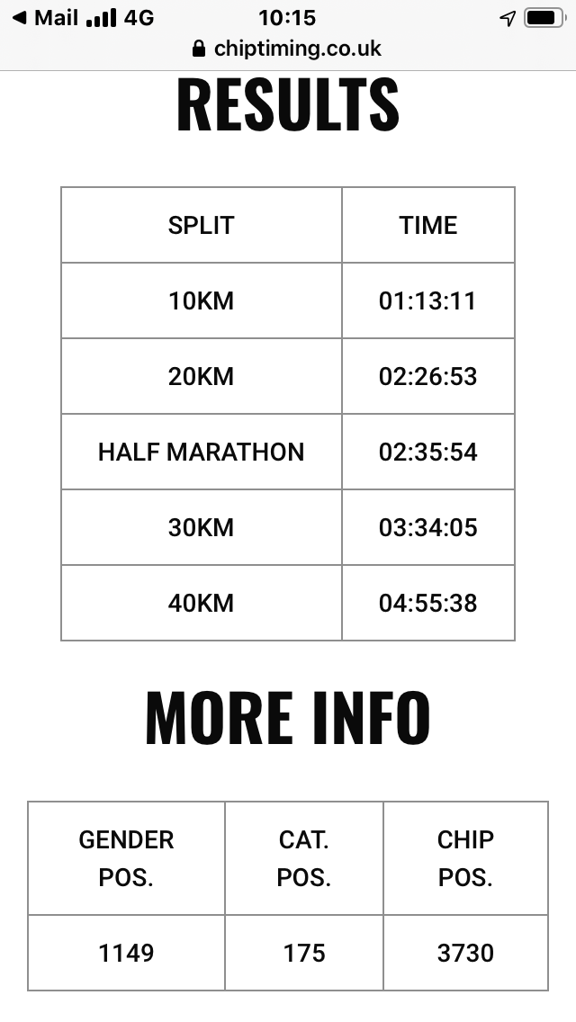 24 miles felt good but I’m pretty sure they had started to move the mile markers as it seemed to take forever to get to 25 miles then the Holy Grail of 26!