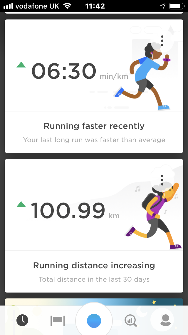 So these are the runs from this week with a 14km to come on Friday and, a little surprise from my TomTom app that told me I had run over 100km in the last 30 days! Pleased with that!